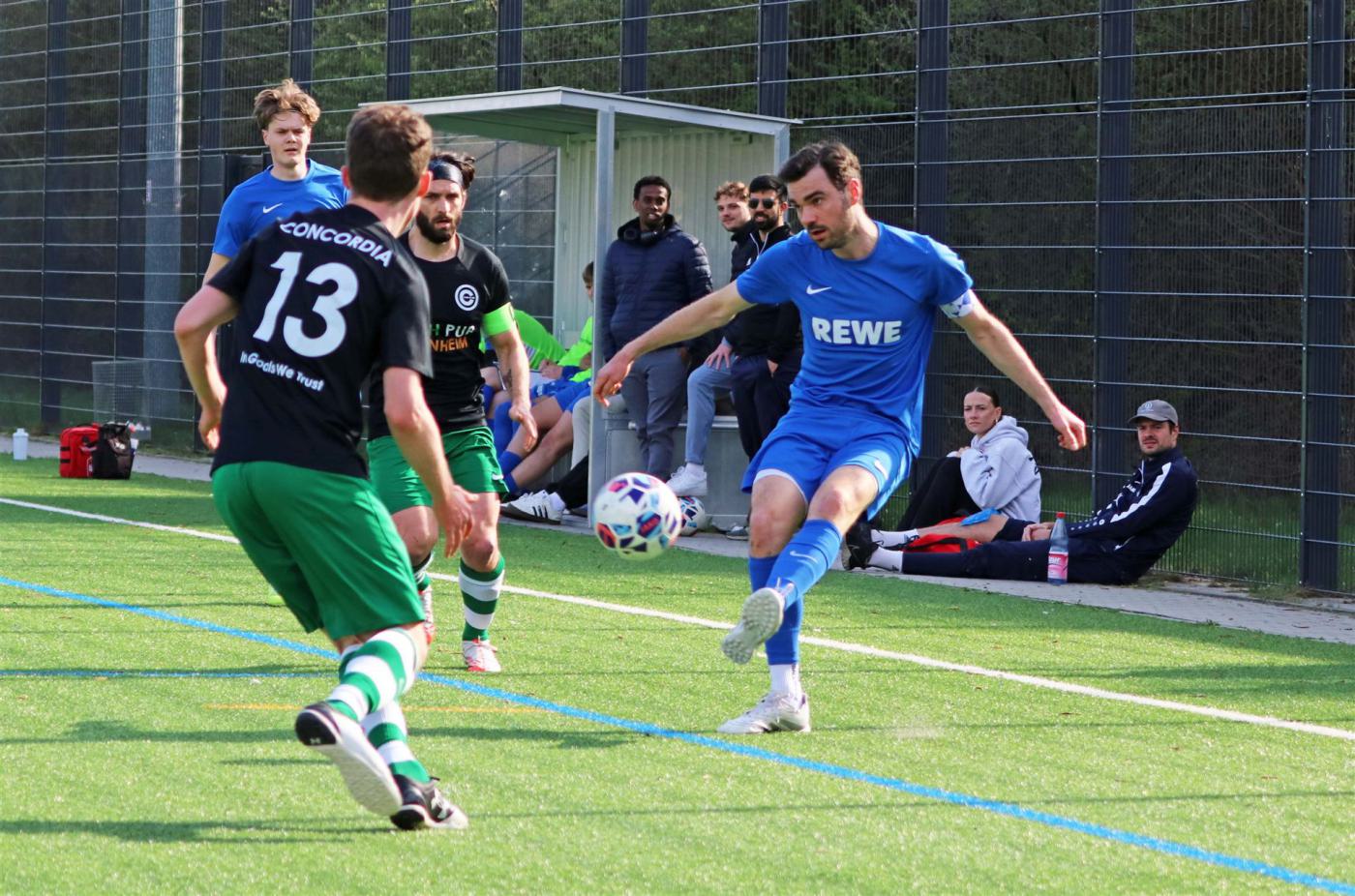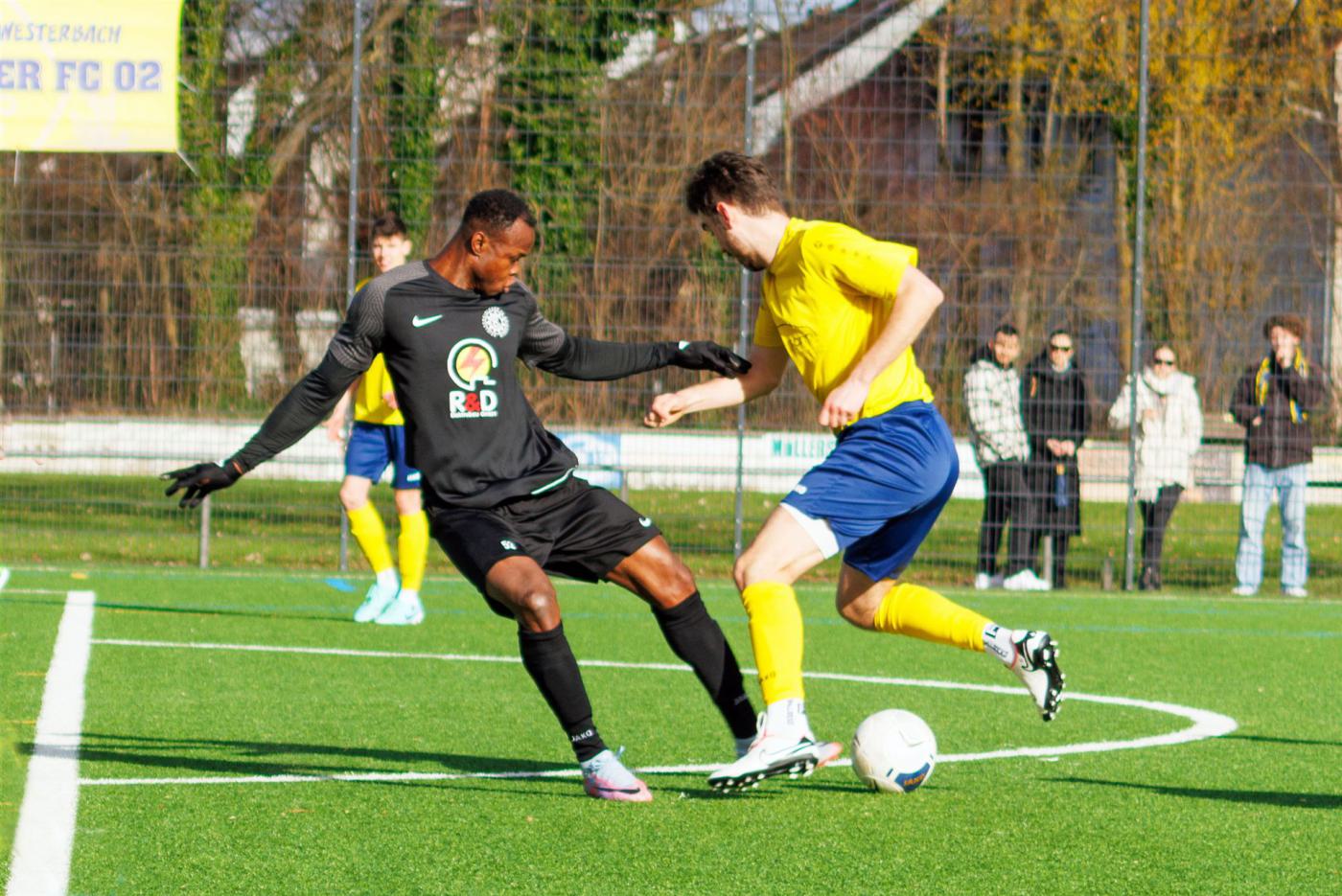 Nach der starken Leistung am vergangenen Wochenende gegen Tabellenführer Griesheim 02 mit der unglücklichen 0:2 Niederlage bekam es der Club bei herrlichem Frühlingswetter wieder mit einem Team aus der Spitzengruppe der Kreisoberliga Frankfurt, nämlich dem Tabellenvierten Concordia Eschersheim, zu tun. Zu Beginn passierte nicht viel, beide Teams agierten vorsichtig aus einer geordneten Defensive und konnten sich kaum Chancen erarbeiten. Allein Florian Meinshausen mit einem Schuss aus 16 Metern und Pascal Marinic mit einem zu hoch angesetzten Kopfball nach einem Eckball beschworen etwas Gefahr herauf. Der überraschende Führungstreffer der Gäste in der 30. Minute durch Emil Gutschmidt durch einen gekonnten Heber über den etwas zu spät aus seinem Tor herausstürzenden Pierre Marlon Mueller brachte Schwung in die Begegnung. Der Club forcierte die Angriffsbemühungen und wurde in der 39. Minute belohnt, als ein Abwehrspieler der Concordia Oscar Thiam im Strafraum nur durch ein Foul stoppen konnte. Kapitän Niklas Vogt verwandelte den fälligen Elfmeter sicher zum Ausgleich. Wie im letzten Spiel in Griesheim kam der Club nach der Halbzeitpause „verschlafen“ aus der Kabine und handelte sich sofort den Führungstreffer der Concordia durch Jan Vossen in der 47. Minute ein. Das Trainerduo Arazm Saghafi und Navid Teimouri reagierte dann baldigst, brachte mit Ali Osman, Luka Duka, Gabriel Thiam und Moritz Lingenfelder für Florian Meinshausen, Ayoub Hazzazi, Ertap Turgut und Samet Temizsoy frische Kräfte, doch trotz allem Einsatzes gab es kein Durchkommen für den Club. Die Concordia hatte noch eine Riesenchance in der 73. Minute zur Vorentscheidung, doch dem Stürmer der Gäste versagten die Nerven bei einer 100% Chance. Das war noch einmal ein Weckruf für den Club, ein Angriff nach dem anderen erfolgte und es kam zum großen Auftritt des eingewechselten Luka Duka mit einem lupenreinen Hattrick. Zuerst erzielte er in der 77. Minute mit einem platzierten Kopfball nach Eckball von Niklas Vogt den Ausgleich, wobei die Concordia Verantwortlichen die Aktion, die zum Eckball führte, als Abseits reklamierten. Nur drei Minuten später spitzelte Luka Duka dem Torhüter Benjamin Kress, der im eigenen Strafraum die Gefahrensituation spielerisch lösen wollte, den Ball weg, umspielte den Torhüter noch einmal und schob zur umjubelten Führung ins leere Tor ein. Danach überschlugen sich die Ereignisse, im direkten Gegenzug nach der Führung hielt Pierre Marlon Mueller mit einer Glanzparade den fast unhaltbaren Fernschuss und verhinderte den Ausgleich. Wieder kurz darauf meckerte der eingewechselte Saba Kvaratskhelia nach seinem Foul an Niklas Vogt so vehement gegen den Schiedsrichter, dass dieser ihn mit Gelb-Rot vom Platz stellte. Den stark geschossenen Freistoss durch Niklas Vogt in der 85. Minute entschärfte Benjamin Kress durch eine tolle Parade. Der Club ließ aber nicht locker und nach einem Konter machte Luka Duka nach Pass durch Moritz Lingenfelder mit seinem dritten Tor innerhalb zehn Minuten zum entscheidenden 4:2 „den Deckel drauf“. Das war ein Kraftakt des Clubs mit einem sehr versöhnlichen Abschluss und bestätigte wieder einmal, dass in dieser Saison durch die Breite des Kaders auch Urlaube und Krankheiten von etablierten Spielern kompensiert werden können.