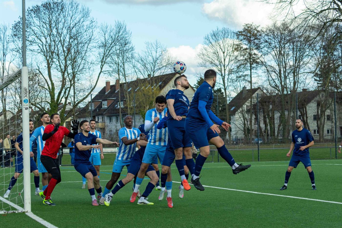 Nach der starken Leistung am vergangenen Wochenende gegen Tabellenführer Griesheim 02 mit der unglücklichen 0:2 Niederlage bekam es der Club bei herrlichem Frühlingswetter wieder mit einem Team aus der Spitzengruppe der Kreisoberliga Frankfurt, nämlich dem Tabellenvierten Concordia Eschersheim, zu tun. Zu Beginn passierte nicht viel, beide Teams agierten vorsichtig aus einer geordneten Defensive und konnten sich kaum Chancen erarbeiten. Allein Florian Meinshausen mit einem Schuss aus 16 Metern und Pascal Marinic mit einem zu hoch angesetzten Kopfball nach einem Eckball beschworen etwas Gefahr herauf. Der überraschende Führungstreffer der Gäste in der 30. Minute durch Emil Gutschmidt durch einen gekonnten Heber über den etwas zu spät aus seinem Tor herausstürzenden Pierre Marlon Mueller brachte Schwung in die Begegnung. Der Club forcierte die Angriffsbemühungen und wurde in der 39. Minute belohnt, als ein Abwehrspieler der Concordia Oscar Thiam im Strafraum nur durch ein Foul stoppen konnte. Kapitän Niklas Vogt verwandelte den fälligen Elfmeter sicher zum Ausgleich. Wie im letzten Spiel in Griesheim kam der Club nach der Halbzeitpause „verschlafen“ aus der Kabine und handelte sich sofort den Führungstreffer der Concordia durch Jan Vossen in der 47. Minute ein. Das Trainerduo Arazm Saghafi und Navid Teimouri reagierte dann baldigst, brachte mit Ali Osman, Luka Duka, Gabriel Thiam und Moritz Lingenfelder für Florian Meinshausen, Ayoub Hazzazi, Ertap Turgut und Samet Temizsoy frische Kräfte, doch trotz allem Einsatzes gab es kein Durchkommen für den Club. Die Concordia hatte noch eine Riesenchance in der 73. Minute zur Vorentscheidung, doch dem Stürmer der Gäste versagten die Nerven bei einer 100% Chance. Das war noch einmal ein Weckruf für den Club, ein Angriff nach dem anderen erfolgte und es kam zum großen Auftritt des eingewechselten Luka Duka mit einem lupenreinen Hattrick. Zuerst erzielte er in der 77. Minute mit einem platzierten Kopfball nach Eckball von Niklas Vogt den Ausgleich, wobei die Concordia Verantwortlichen die Aktion, die zum Eckball führte, als Abseits reklamierten. Nur drei Minuten später spitzelte Luka Duka dem Torhüter Benjamin Kress, der im eigenen Strafraum die Gefahrensituation spielerisch lösen wollte, den Ball weg, umspielte den Torhüter noch einmal und schob zur umjubelten Führung ins leere Tor ein. Danach überschlugen sich die Ereignisse, im direkten Gegenzug nach der Führung hielt Pierre Marlon Mueller mit einer Glanzparade den fast unhaltbaren Fernschuss und verhinderte den Ausgleich. Wieder kurz darauf meckerte der eingewechselte Saba Kvaratskhelia nach seinem Foul an Niklas Vogt so vehement gegen den Schiedsrichter, dass dieser ihn mit Gelb-Rot vom Platz stellte. Den stark geschossenen Freistoss durch Niklas Vogt in der 85. Minute entschärfte Benjamin Kress durch eine tolle Parade. Der Club ließ aber nicht locker und nach einem Konter machte Luka Duka nach Pass durch Moritz Lingenfelder mit seinem dritten Tor innerhalb zehn Minuten zum entscheidenden 4:2 „den Deckel drauf“. Das war ein Kraftakt des Clubs mit einem sehr versöhnlichen Abschluss und bestätigte wieder einmal, dass in dieser Saison durch die Breite des Kaders auch Urlaube und Krankheiten von etablierten Spielern kompensiert werden können.